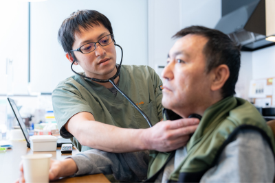 地域で多くの医師と連携しているため、入居者様の疾病により担当医を決め(現在の主治医でも可能です)、定期的な訪問診療を実施しています。急変時の往診も担当医が行い、緊急搬送時にも対応しています。歯科医師による訪問歯科や薬剤師よる服薬指導・管理も行い、医療面サポートは万全です。